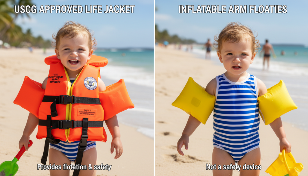 Inflatable floaties can deflate or slip off and should never replace supervision.
