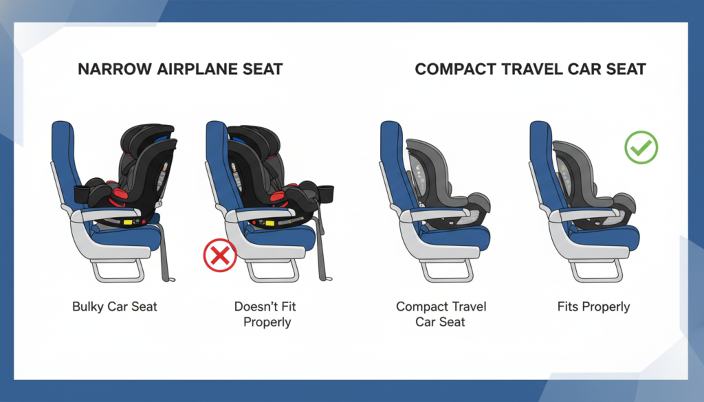 Parents should check airline seat width when possible to avoid installation problems.