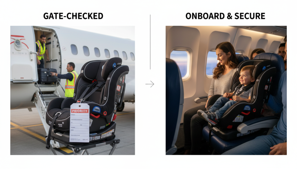 Parents often debate whether to gate-check their car seat or use it onboard.