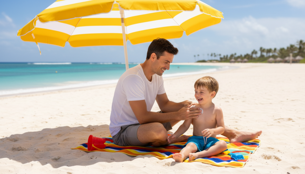 Heat exposure is one of the biggest risks for families. The Caribbean sun is very strong. Children can become dehydrated quickly.